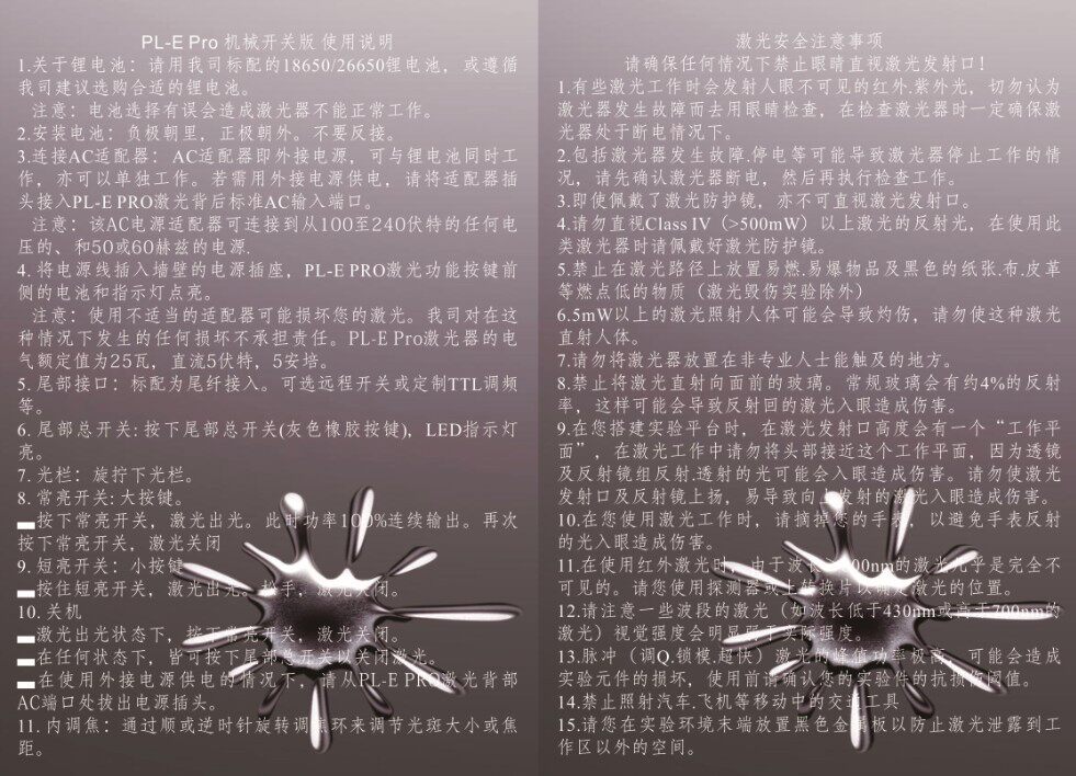 Эта модель представляет собой портативную лазерную версию PL-E Pro, разогнанную оригинальными диодами NDB7A75 Nichia. Перед отправкой с завода он прошел строгие усталостные испытания. Он стремится достичь относительного баланса выходной мощности и надежности продукта, снизить частоту отказов и избавить пользователей от беспокойства.