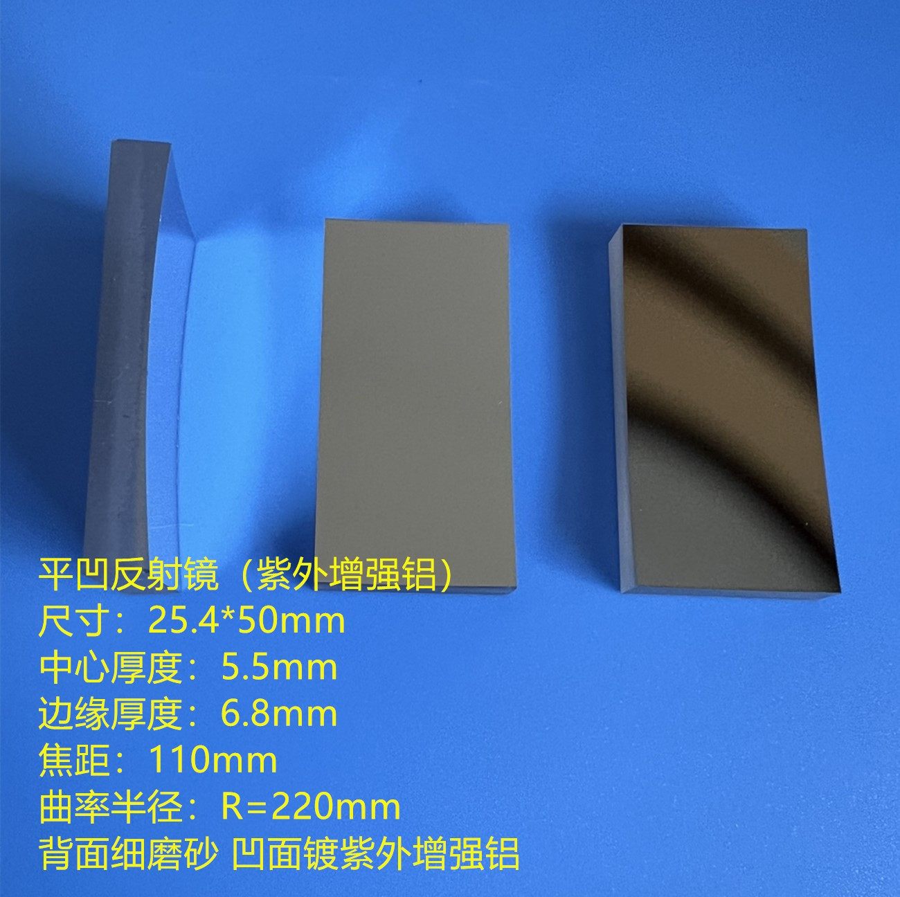 Прямоугольный плоский вогнутый отражатель (ультрафиолетовое алюминиевое количество) 25,4*50 мм фокусное расстояние f = 110 мм