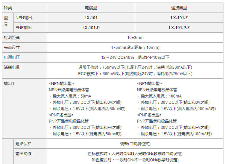 ① LX-111ДаLX-101Простой тип без цифрового дисплея ② LX-101С помощью цифрового дисплея вы можете точно настроить параметры и иметь относительно более высокую чувствительность ③ LX-111Это упаковка пластикового пакета.LX-101Это коробка ④ LX-111иLX-101Это выход NPN,LX-111-P LX-101-PЭто вывод PNP |