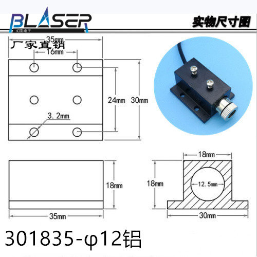 Трубка, диаметр 12мм, 12мм, фиксаторы в комплекте, 30×22×27мм