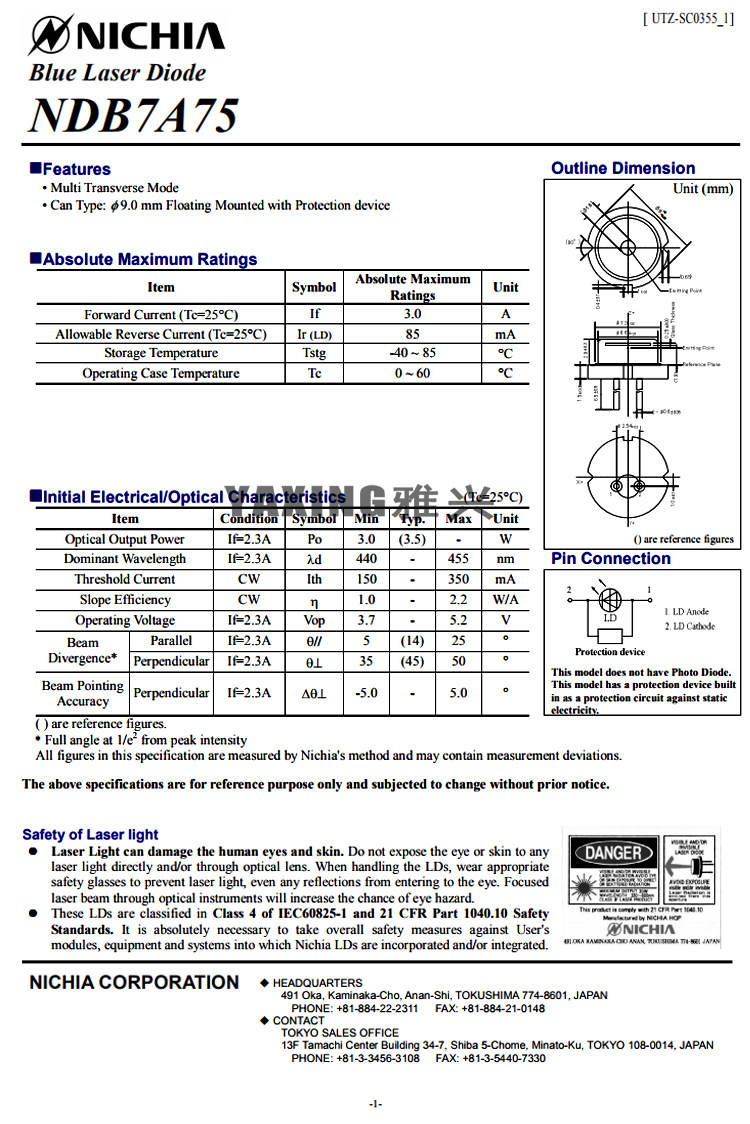 Новый оригинальный день Asia NDB7A75 445NM 450NM 3,5 Вт Blu -Ray Laser Tube 9mm