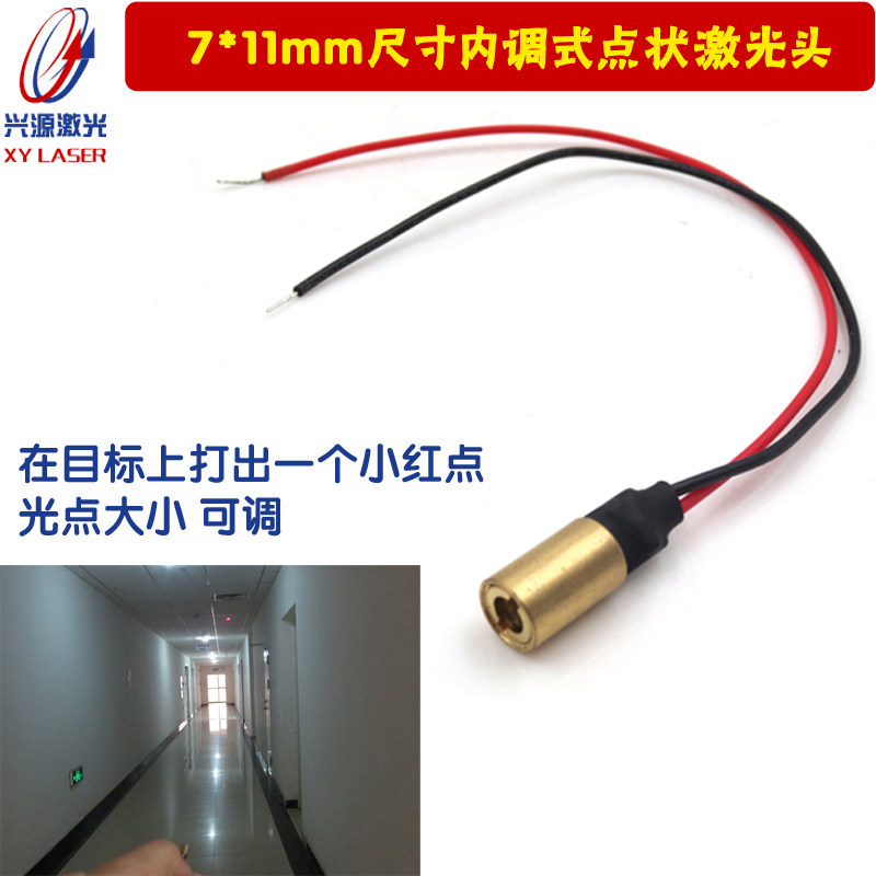 Диаметр 7 мм, длина 11 мм, 635 нм, 5 МВт, внутренняя регулируемая лазерная головка с красным световым пятном (модель XY635-5AD-711NTS) 35 Юань/ПК