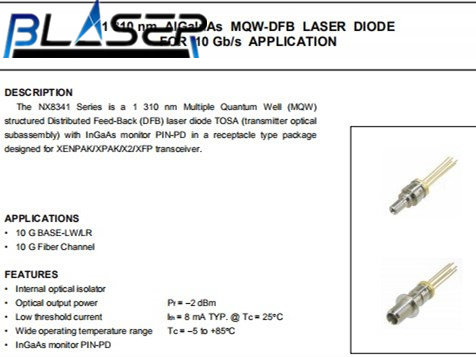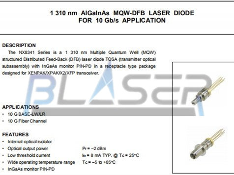 1310 нм 2 МВт лазерные диоды NX8341TN MQW-DFB PIN-PD