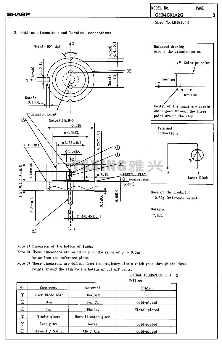Sharp GH04C01A2G 450NM1.6W Высоко -мощный лазерный диод Blu -Ray Оригинальный подлинный