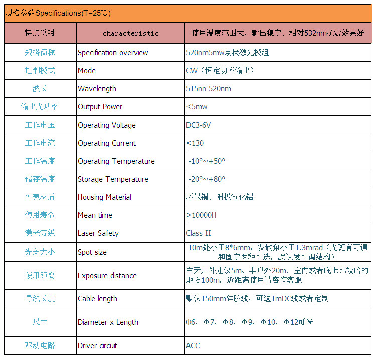 520NM5MW Немецкая импортная трубка -позиционирование лазерного модуля, прицеливание, инструкции, инструкции