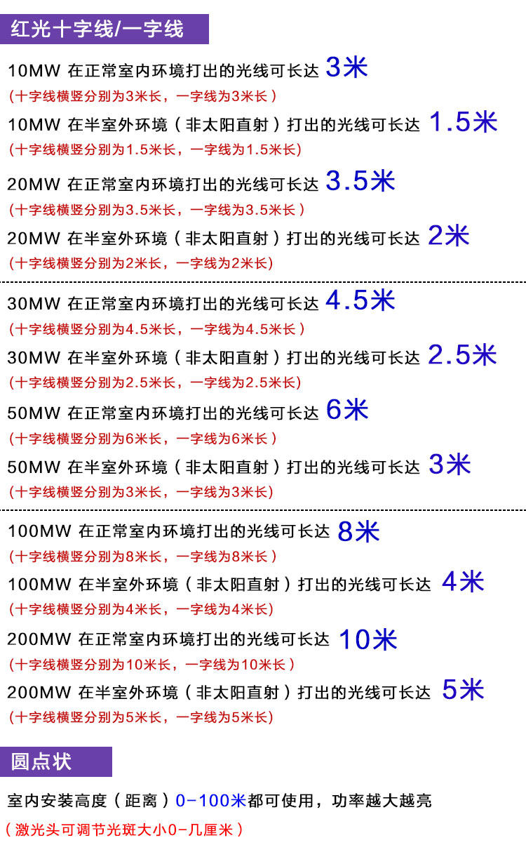 | Цвет: | 10 МВт одна линия (в помещении 2,5 метра), 10 МВт поперечная линия (2 метра в комнате), 10 МВт точка (5 метров в комнате), Линия слов 20во (3 метра в комнате), Поперечная линия 20 МВт (3 метра в комнате), 20 МВт точечная форма (в помещении 10 метров далеко), Линия слов 30 МВт (4 метра в комнате), Поперечная линия 30 МВ (4 метра в комнате), 30 МВт точечная обработка (внутренняя 20 метров далеко), 50 МВт один слов (6 метров в комнате), Крест 50 МВ (6 метров в комнате), 50 МВт точечная форма (в помещении 30 метров далеко), Линия слов 100 МВт (7 метров в комнате), Поперечная линия 100 МВт (6 метров в комнате), 100 МВт точечная форма (50 метров в комнате) |