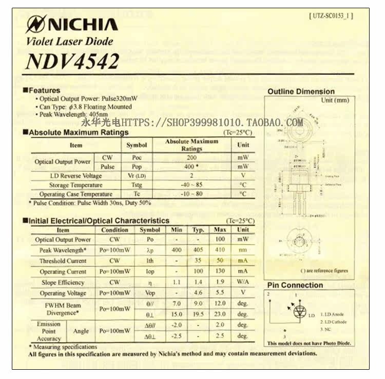 NDV4542 405NM200MW День разборки азиатского синего пурпурного лазерного импульса 400 МВт