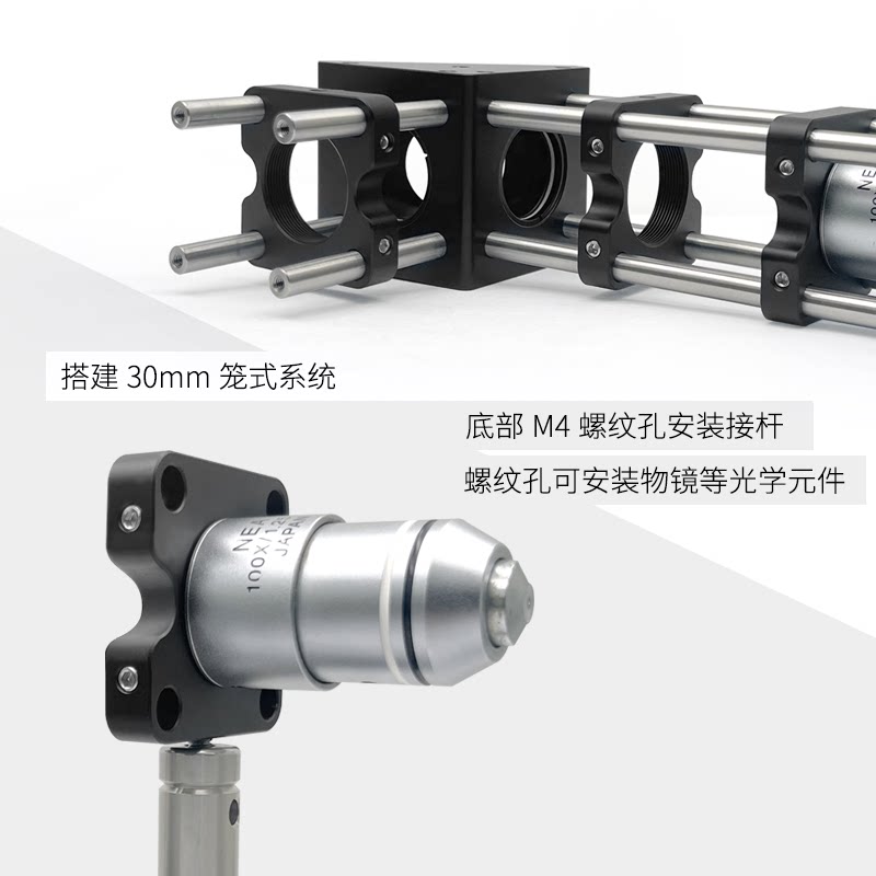 Установка микроскопического зеркала с среднеквадратичными отверстиями внутренних резьбов, совместимых с клеткой клетки 30 мм с резьбовым отверстием M4