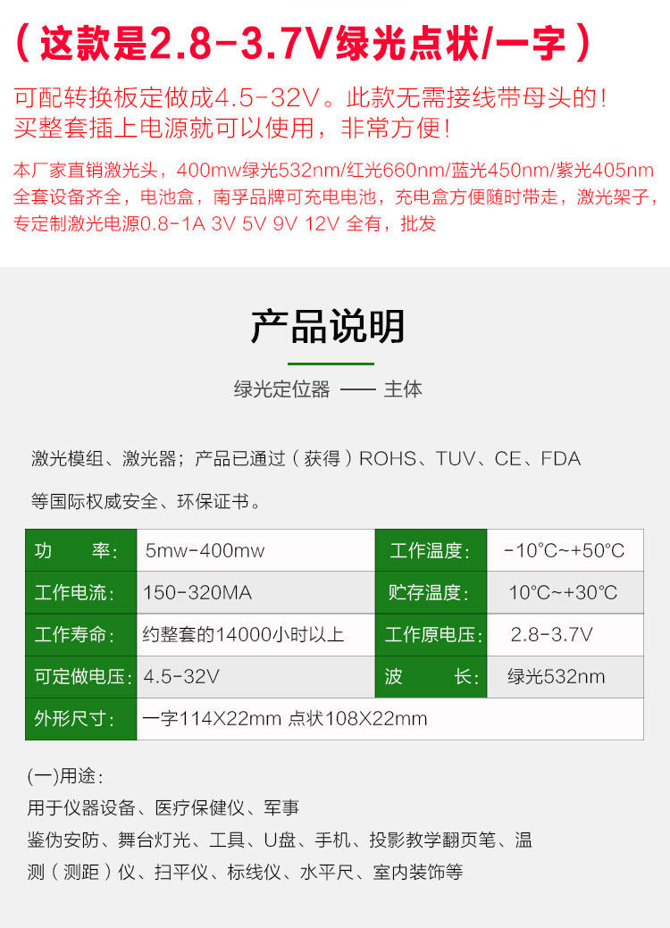 - 5 МВт водонепроницаемый зеленый свет единственное слово одиночное