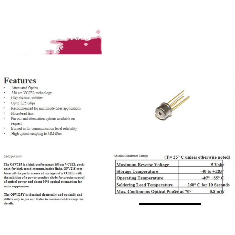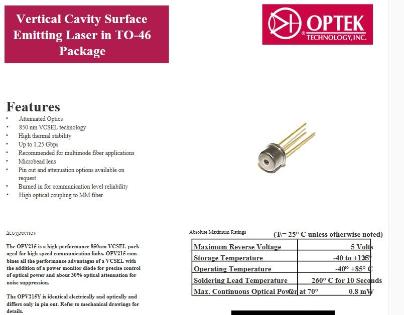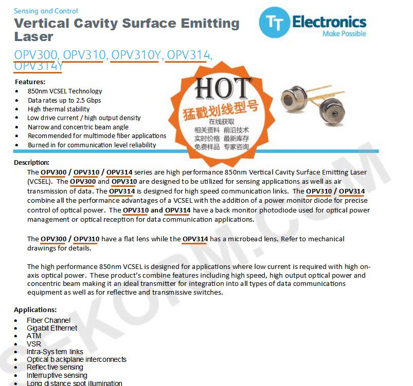 OPTEK OPV214 OPV215 OPV330 OPV310 OPV314 VCSEL Лазерный диод