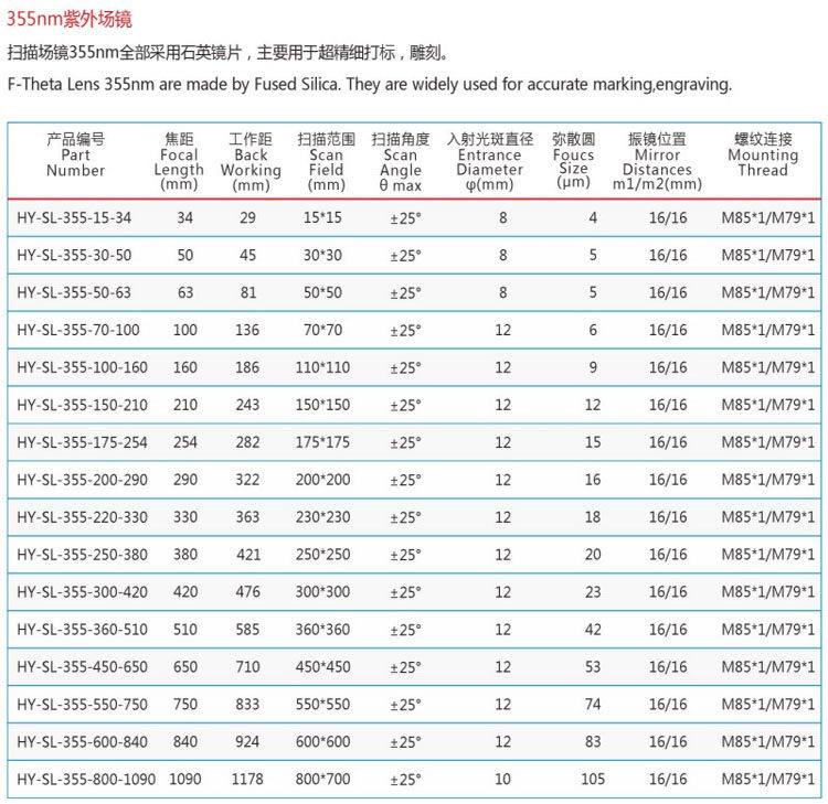 - Jieying 355 нм UV/F100/70x70 Рабочая расстояние 136 мм рабочее расстояние 136 мм