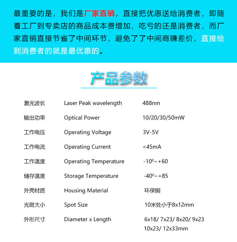 488 нм небесно-голубой свет голубой синий полупроводниковый лазерный модуль точечная лазерная головка медицинская лазерная лампа может быть настроена