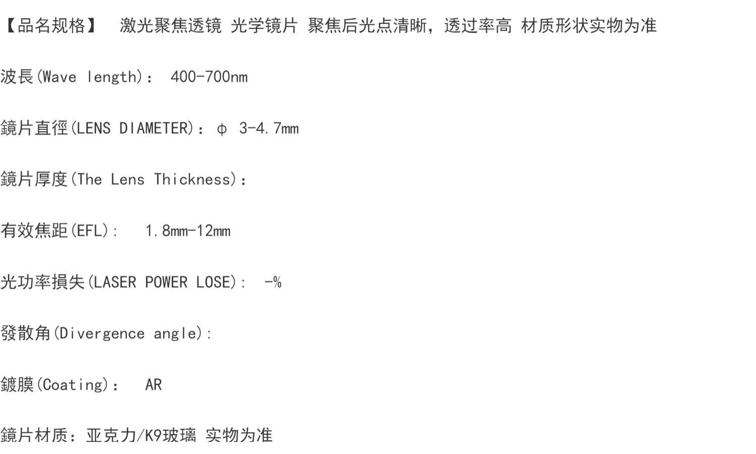 - Объектив, диаметр 3мм, 3мм, 6мм