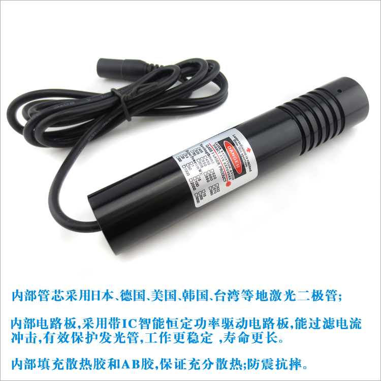 Структурные характеристики: высококачественный лазерный диод+металлическая оболочка+высококачественная линза+плата с постоянной мощностью+провод