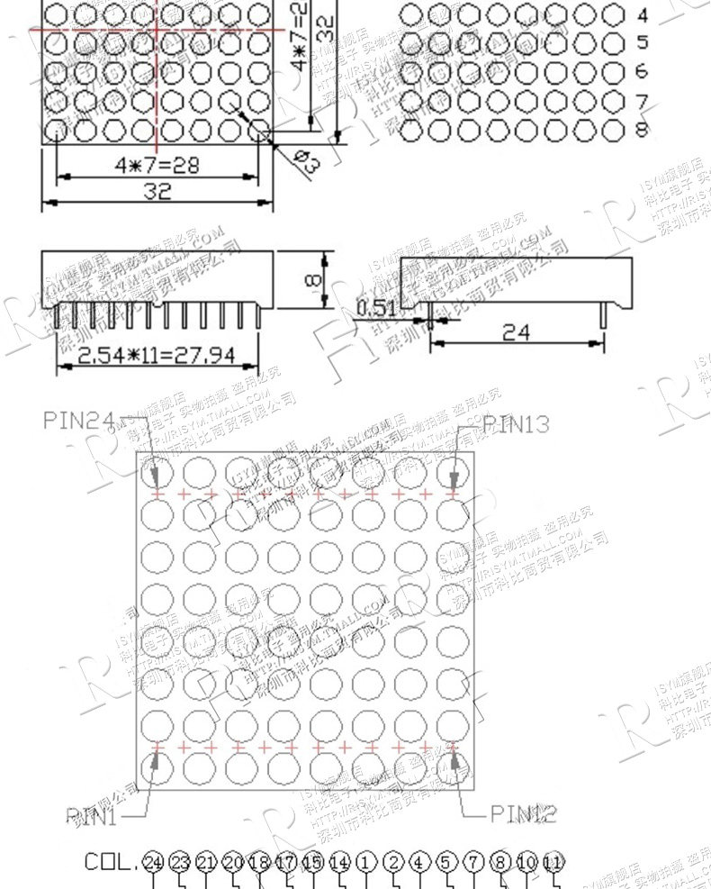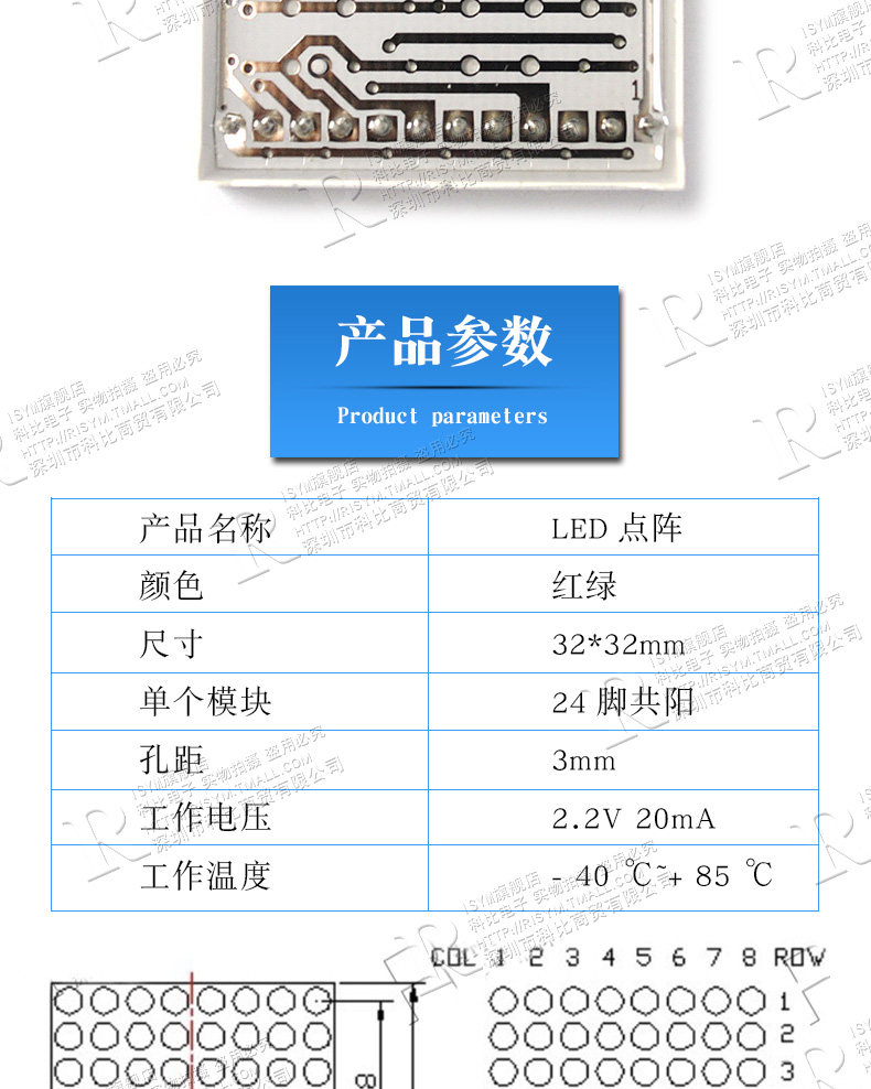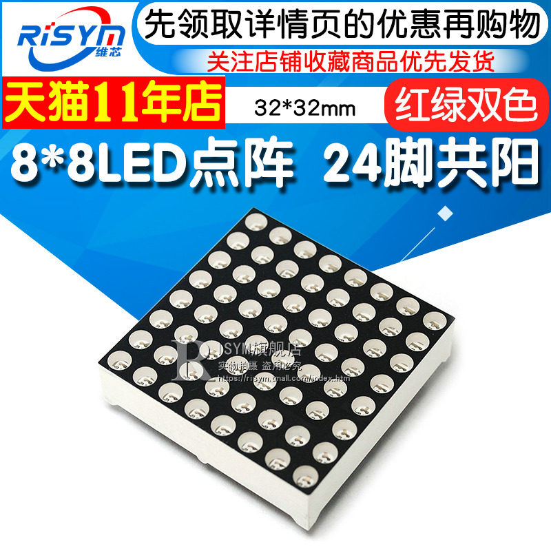 Gaoliang 8*8led Dot Matrix 3,0 мм 3 мм Красный и Зеленый Два -Color 32*32 мм 24 контакта