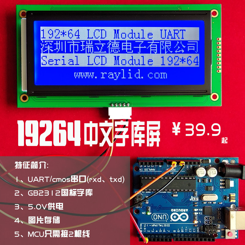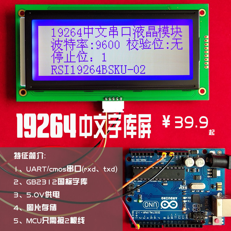 Совершенно новый 19264 китайский ЖК -ЖК -модуль китайской библиотеки персонажей RS232 Дисплей дисплея прибора последовательных коммуникаций RS232