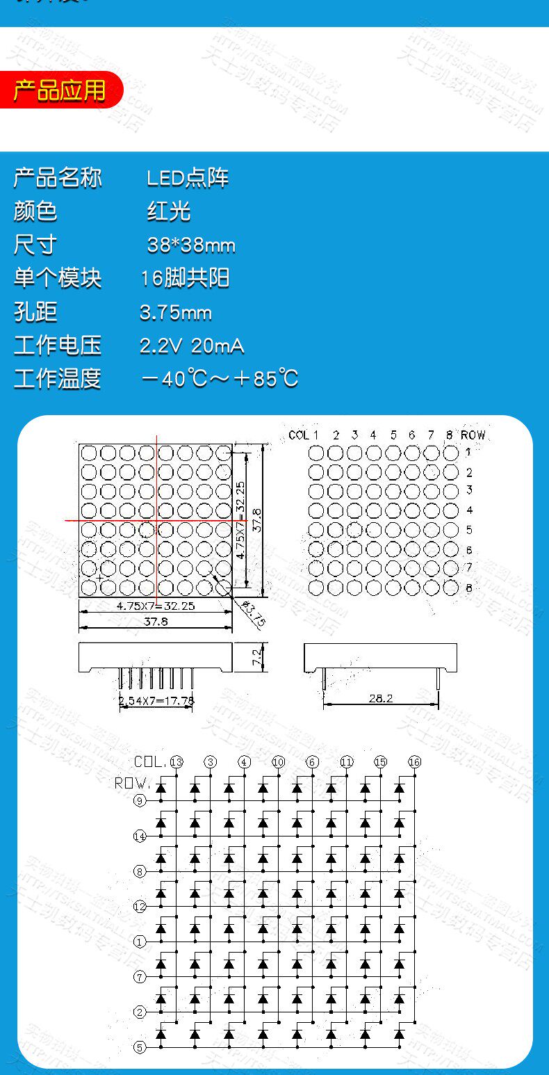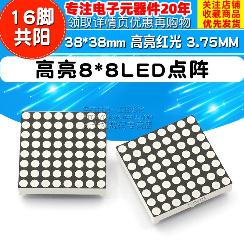 Gao Liang 8*8LED DOT MATRIX 3,75 мм высокий ярко -красный свет 38*38 мм 16 -контакт Common Yang