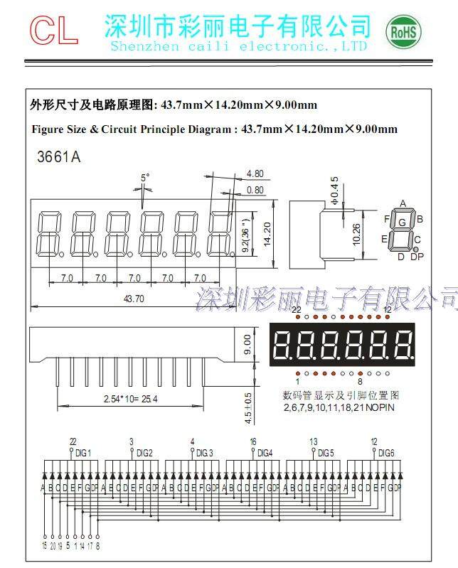 0,36 дюйма шестизначной цифровой трубки Common Yin Red Cl3661AH-22 Common Yin Six -знак