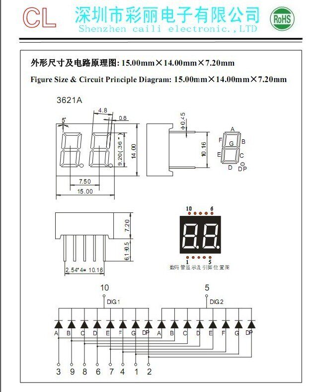 0,36-дюймовый двухзначный двухзначный двухзначный 2621AH3261AS3621AS 0,36 дюйма 0,36 дюйма