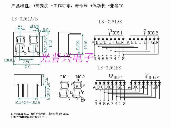 Цифровая трубка 0,36 дюйма 2 -бит 3261B.