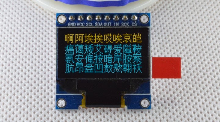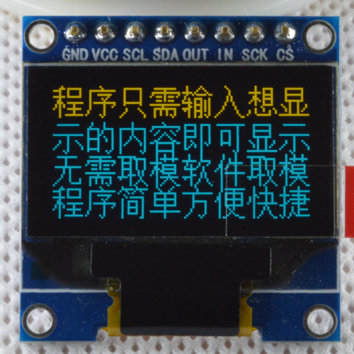 Модуль дисплея OLED со шрифтом, метод связи IIC/I2C, может использоваться как обычный модуль дисплея OLED., а также содержит шрифт IC. Данные точечной матрицы встроенного шрифта можно прочитать из микросхемы шрифта и записать в драйвер OLED.В мобильном IC для достижения цели отображения китайских иероглифов.