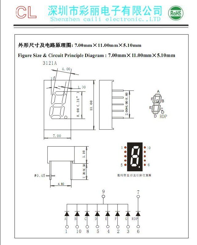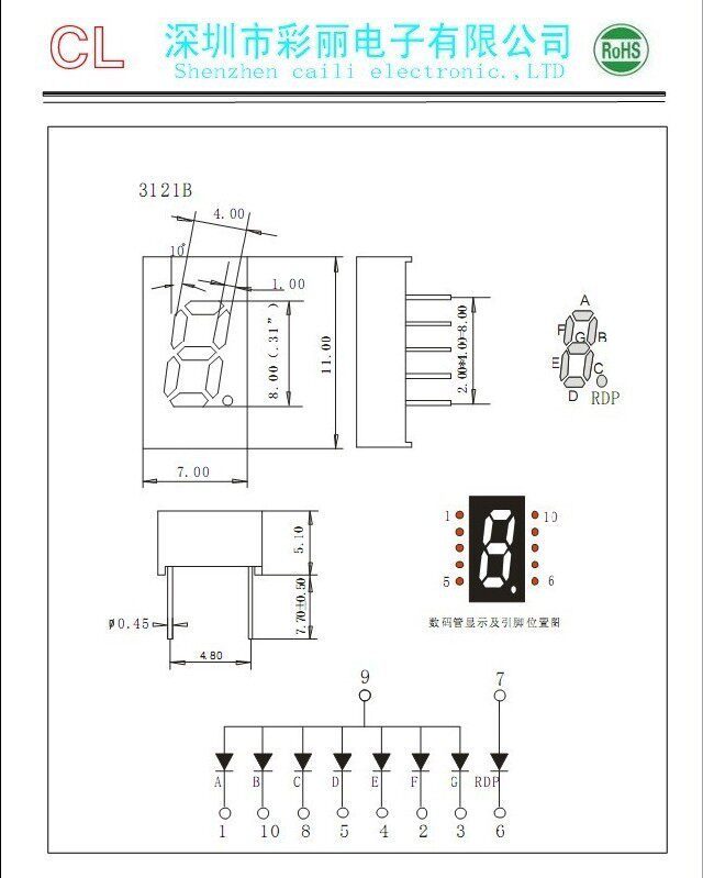 0,32-дюймовая однозначная цифровая трубка 9-7 Общественная нога/Внешний размер: 11,00x7,00x5,10 мм 丨 Общий анод 丨 Светящий цвет красный 丨 желтый зеленый 丨 Нужно больше цвета, пожалуйста, свяжитесь с магазином, чтобы купить и купить