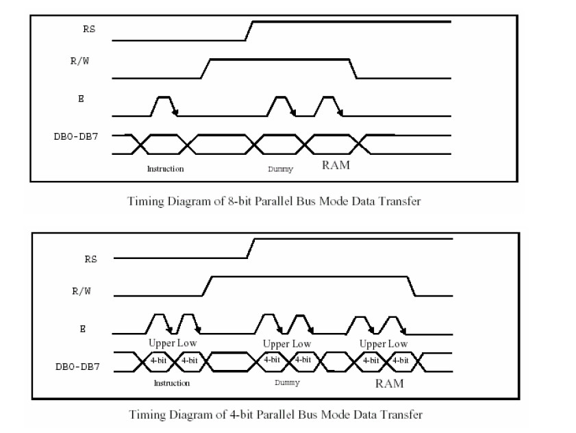 Нога 5: r/w  Когда R/W и E имеют высокую высокую электричество, данные считываются в DB0 ~ DB7; Когда R/W -низкий уровень, E изменяется от высоких уровней до низких уровней, а данные DB0 ~ DB7 записываются на Написано в DB0 ~ DB7, который будет записан в DB0 ~ DB7. IR или DR Register.