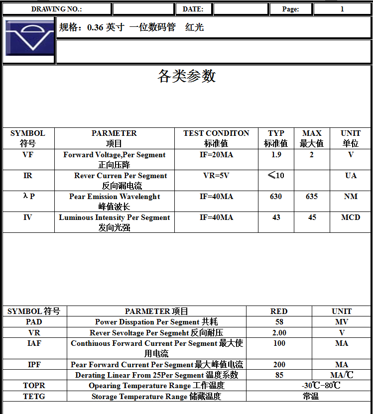 0,36 -дюймовые цифры цифровой трубки Красный свет 0,36 дюйма 1 цифр 1 цифр -труб