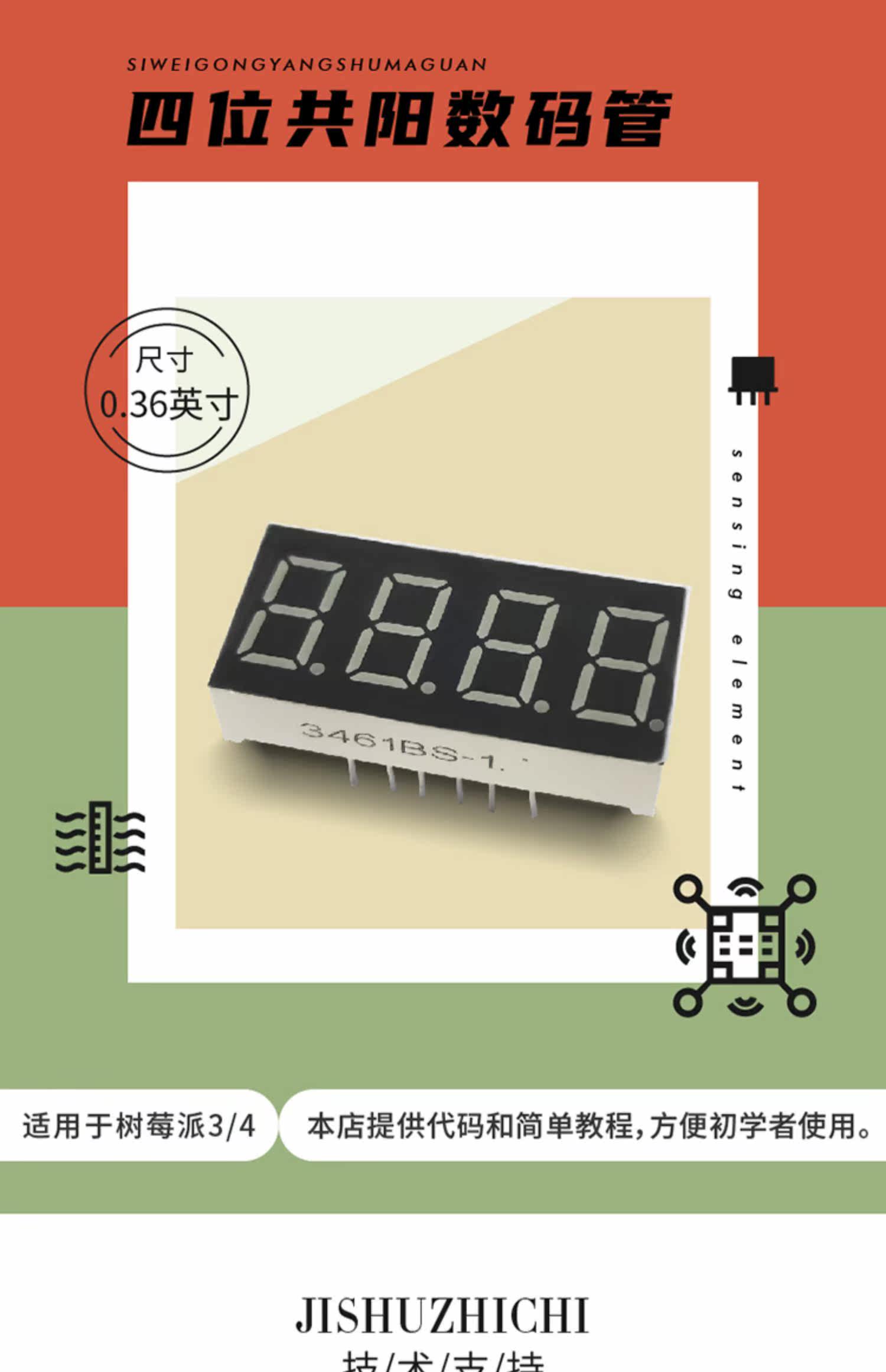 4 -Дигит Цифровая трубка 0,36 -инч обычная ян цифровой трубки 3461 Светодиодная цифровая трубка подходит для Raspberry Pi 3/4