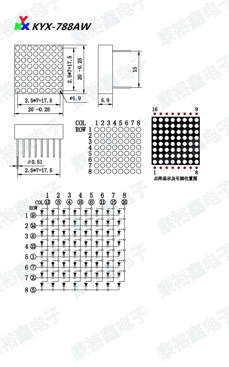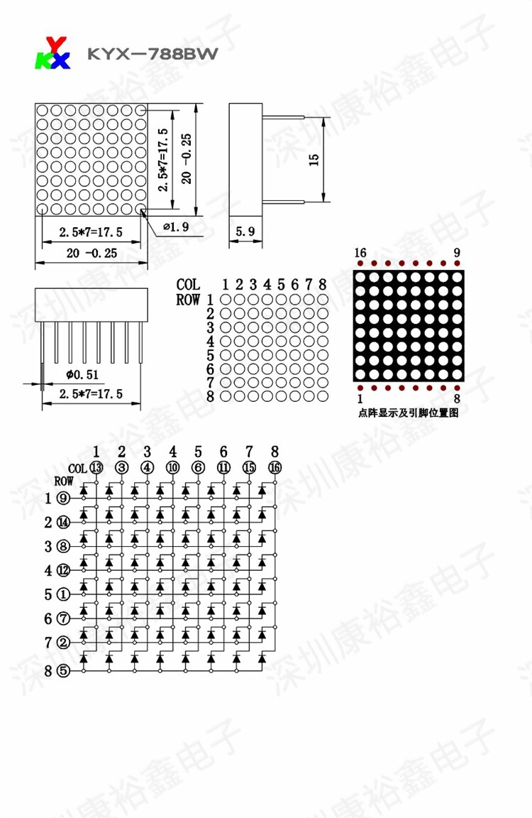 1,9 мм8*8 Ультра-яркий матричный модуль точек с белой светом KYX-7888AW/788BW Матрица точки с белым светом 8*8 точечная линия f1.9