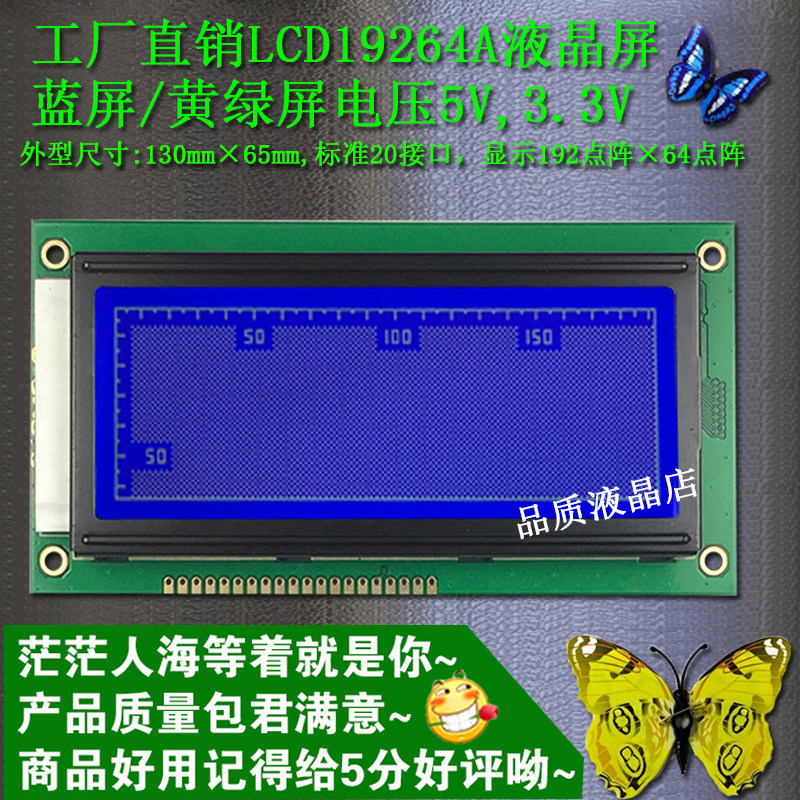 LCD19264A ЖК -экран LCM Модуль дисплея Синий экран Серый экран Желтый зеленый экран Подсветка без шрифтов 5V3.3V