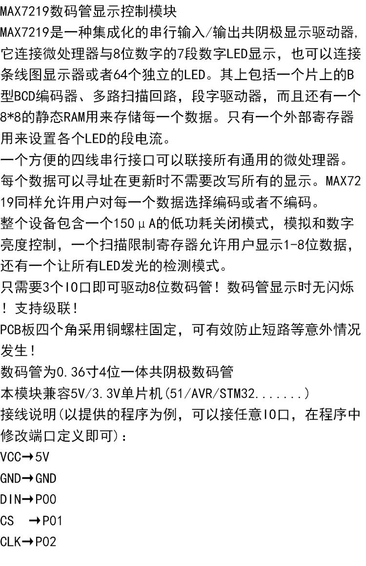 8 -Дигитный модуль дисплея цифровой трубки MAX7219 Светодиодный дисплей поддерживает восьмерку по восьмую сериал 3 управление портом IO