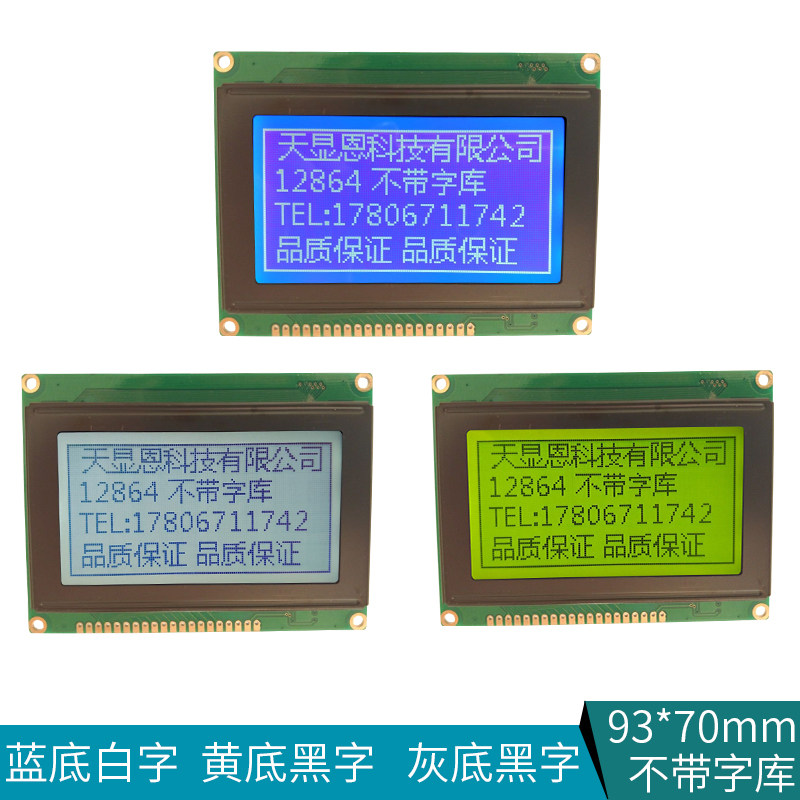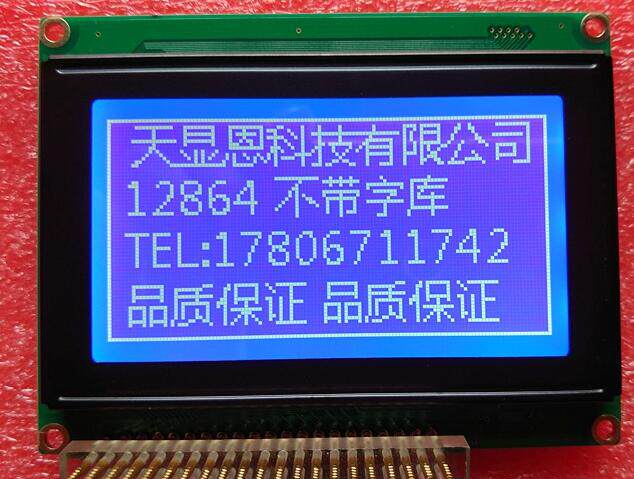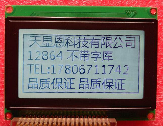 12864 — самый стандартный размер на рынке, 93*70 мм без библиотеки шрифтов, элемент управления KS0107 KS0108, белый фон с черными символами, синий фон с белыми символами, желтый фон с черными символами опционально.Безусловная поддержка больших объемов. Подробности: ТЕЛ: 178 0671 174.