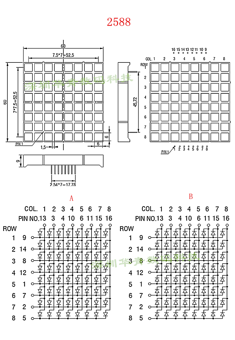 Квадратный матричный модуль F6MM квадратной точки 24888BW 60*60 -Линейный модуль 8*8 точечная матрица 2588BW
