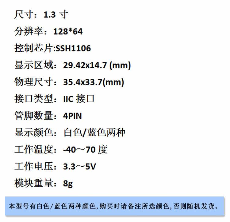 | Чип драйвера: | SH1106, SSD1306 |