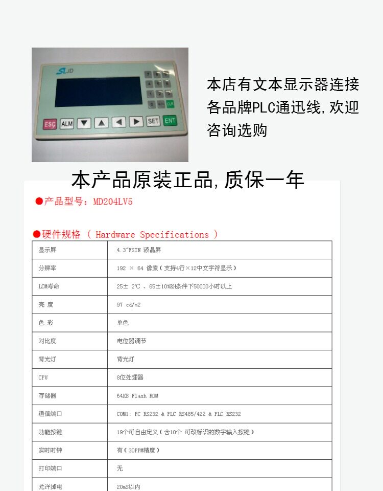 MD204LV5, текстовый дисплей, 19 клавиш, 3,7 "FSTN LCD -экран, SLJD, боковая линия