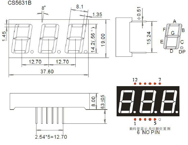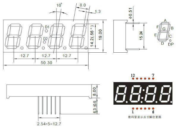 Цифровая трубка 0,56 дюйма 1/2/3/4/5 -BT High -Bright Red Total Yin/Total Yang, один два, три, четыре, четыре,