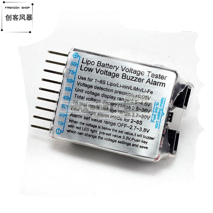 Этот дисплей напряжения используется для обнаружения литиевых батарей от 1S до 8S, автоматически определяя напряжение каждой ячейки и общее напряжение литиевой батареи. Он поддерживает защиту от обратного соединения.