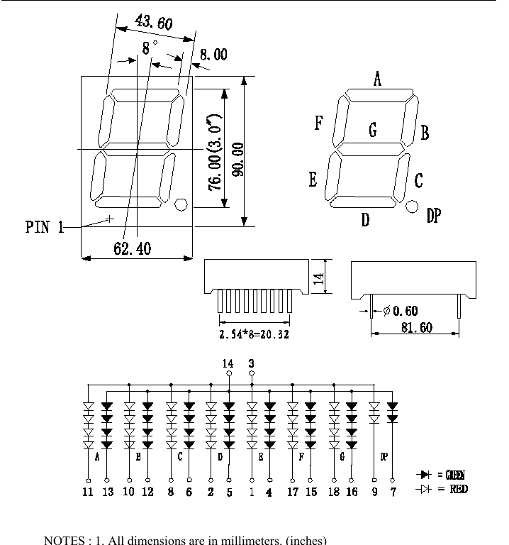 ARK ARKSM033003N/3 Красный и зеленый двух -дюймовый 3 -дюймовый обыкновенный ян светодиодные цифры цифровой трубки длительный срок службы