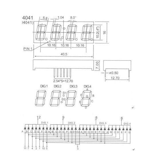 0,4 -INCH FOUR -DIGIT DIGIGLE TUBE с Clock Red 4042BH/AH Common Yang 4041AS/BS