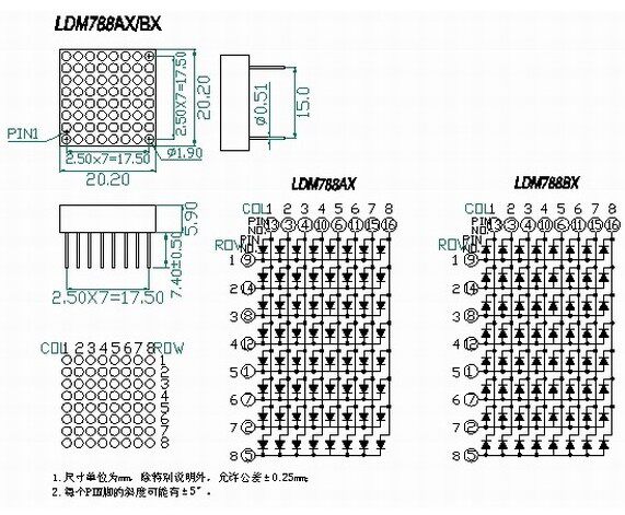 1,9 мм модуль точечной матрицы 8*8 точка линии 1,9 мм 20*20 мм 7888AS/BS Common Yin/Total Yang 16 Pin