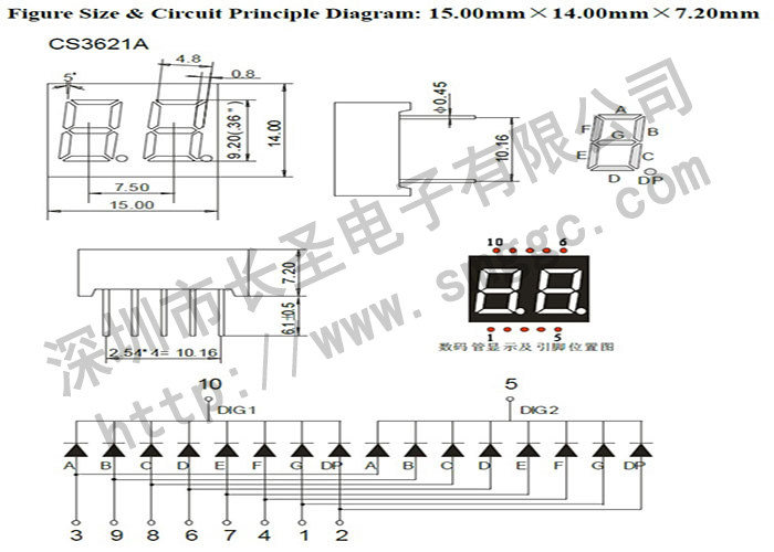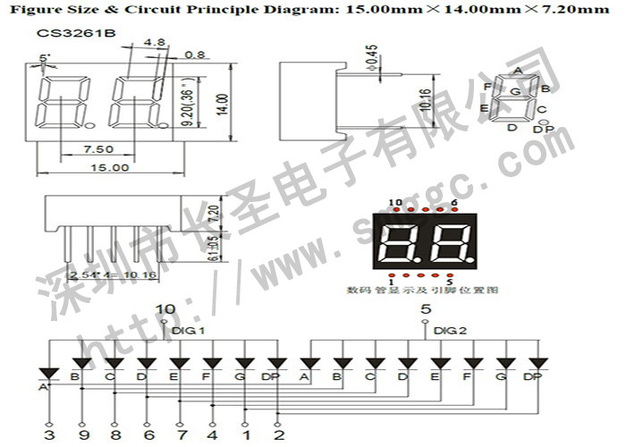 2 -дигита цифровой трубки 0,36 -инч белая цифровая трубка CS3621AW/BW Белая световая цифровая трубка 3261AW/BW