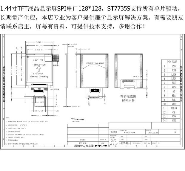 1.44 -Цветочный экран TFT 128*128ST77735S ОДИН -КРИП -драйвер Драйвер SPI Заменить 12864