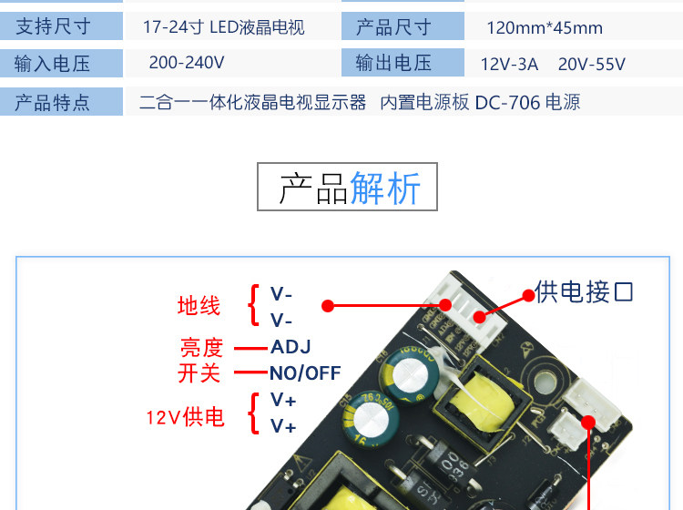 Новый DC-706 716 718JMX-312SY Двух в одном источнике питания 12V3A встроенная плата напряжения подсветки
