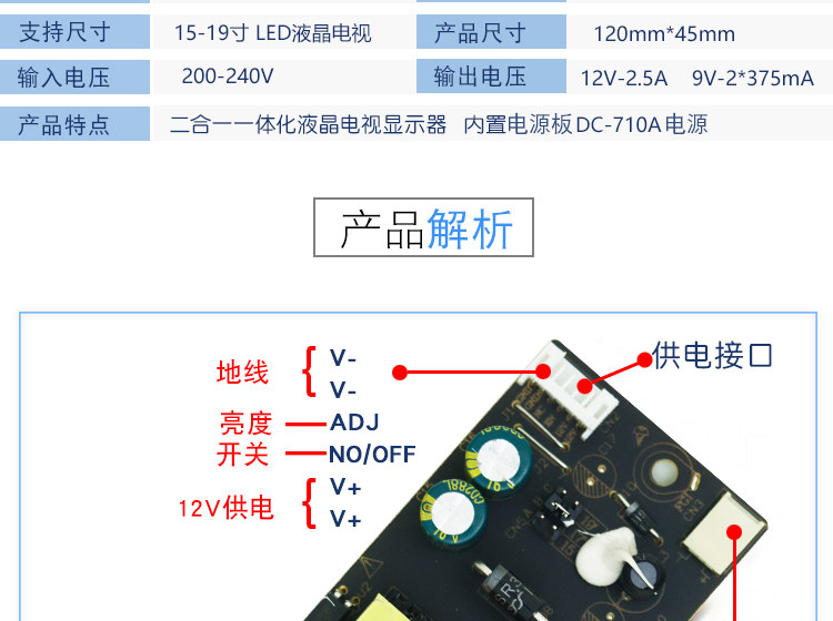 Новый DC-710A DC-708LED CONTUSTANT FOSTION 12V2,5A Power Plate 15 17 19 дюймов