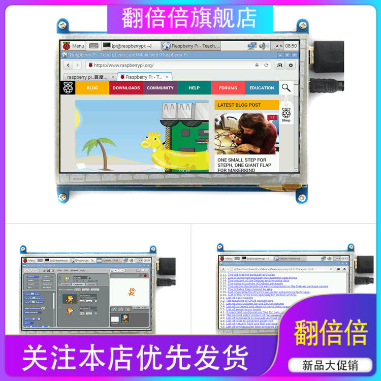 - Поддержите стандартный вход интерфейса HDMI, совместимый и непосредственно вставлен в Raspberry Pi (3 -е поколения, 2 -е поколение 1 -е поколение)