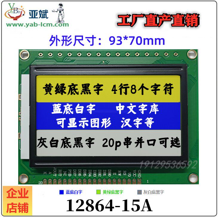 12864-15A ЖК-модуль 12864 Специальный дисплей прибора с синим экраном Последовательный/параллельный порт с библиотекой шрифтов