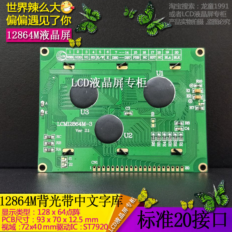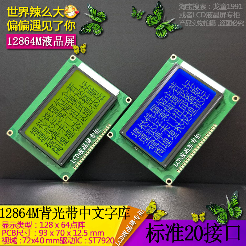LCD12864M дисплея LCM LCM Blue -Yellow Green Screen -Ecrem
