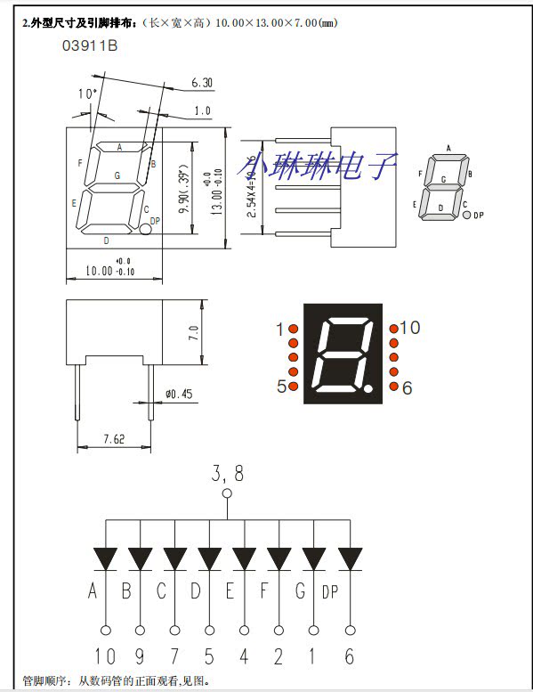 Выделите 0,39 -INCH 1 цифры цифровой трубки экрана красный синий и белый зеленый цвет каждый цвет, общая гарантия качества денежных средств 3911