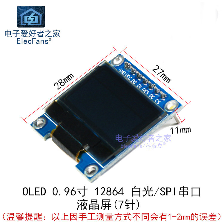 0,96 -зображенный белый характер интерфейс SPI 7 иглы -полоса нижняя пластина OLED LCD 12864 Однопроизводительный микрокомпьютер